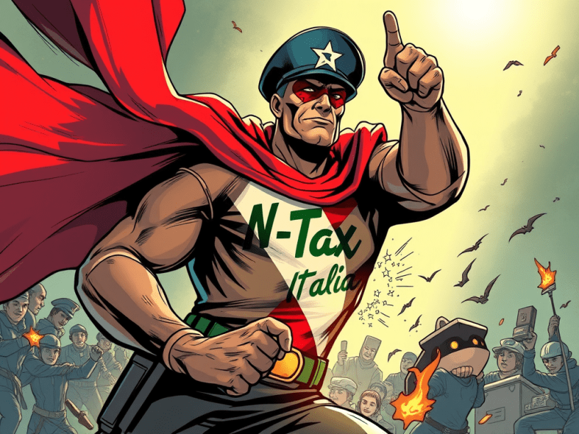 Con un emendamento molto creativo bisogna dire, di Noi Moderati di Maurizio “Rolex” Lupi, l’emendamento istituisce la figura di Capitan Italia, una specie di supereroe che compare, con la sua faccetta con la maschera e le ali per volare via dal fisco e lo scudo con la bandiera italiana e il segnale di divieto di tasse, in qualunque banca dati fiscale, impedendo qualunque controllo e accertamento nei confronti di un protetto di Capitan Italia.
